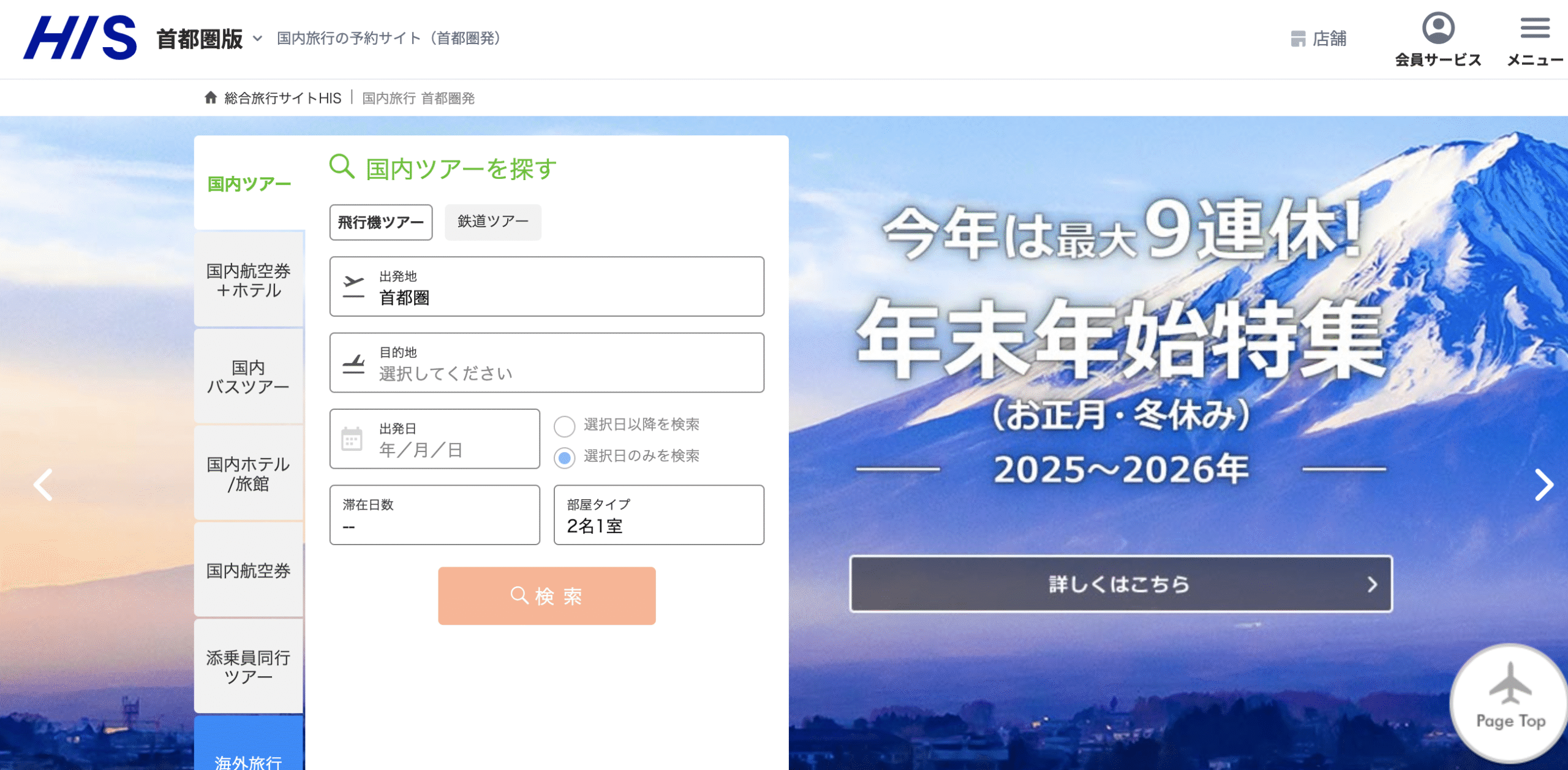 海外旅行のイメージが強いHISですが、国内旅行にも力を入れています。特に「交通+宿泊セット」プランが人気で、航空券付きのツアーを格安で予約可能。店舗サポートも全国にあり、ネットとリアルの両方で安心して利用できます。