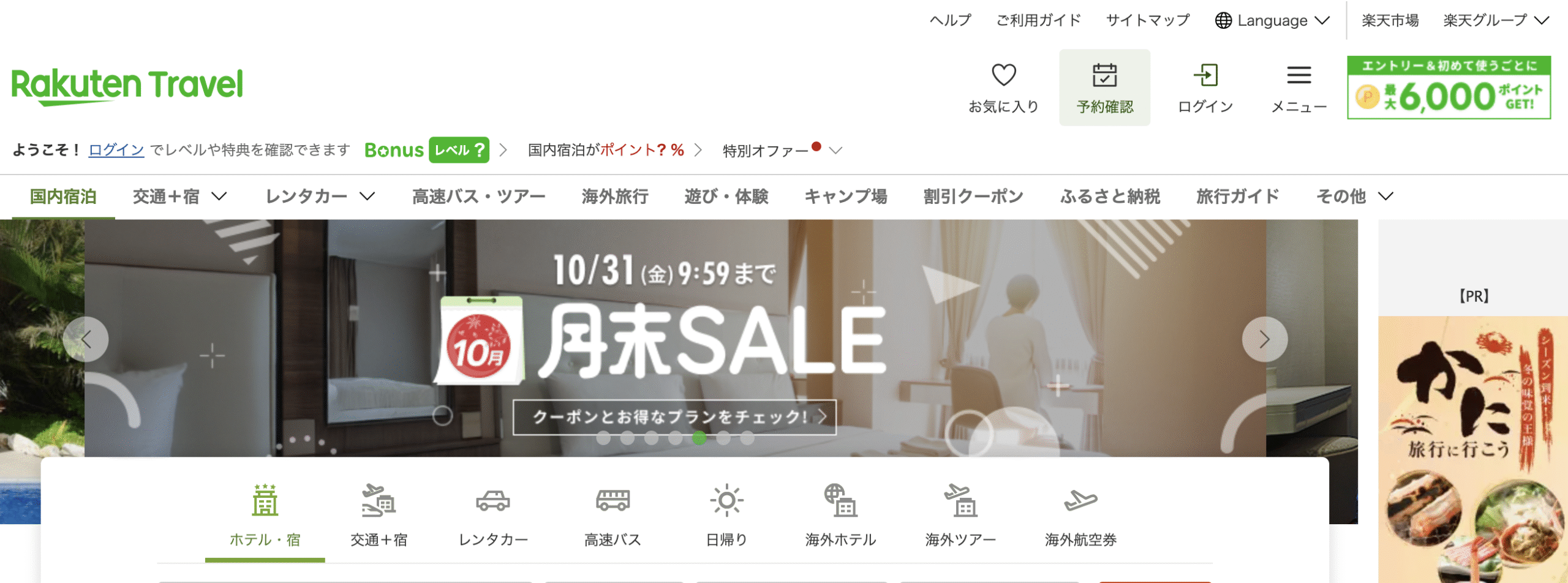 楽天市場ユーザーとの相性抜群。宿泊予約からレンタカー、航空券まで一括手配が可能で、楽天ポイントが貯まる・使えるのが最大の魅力。