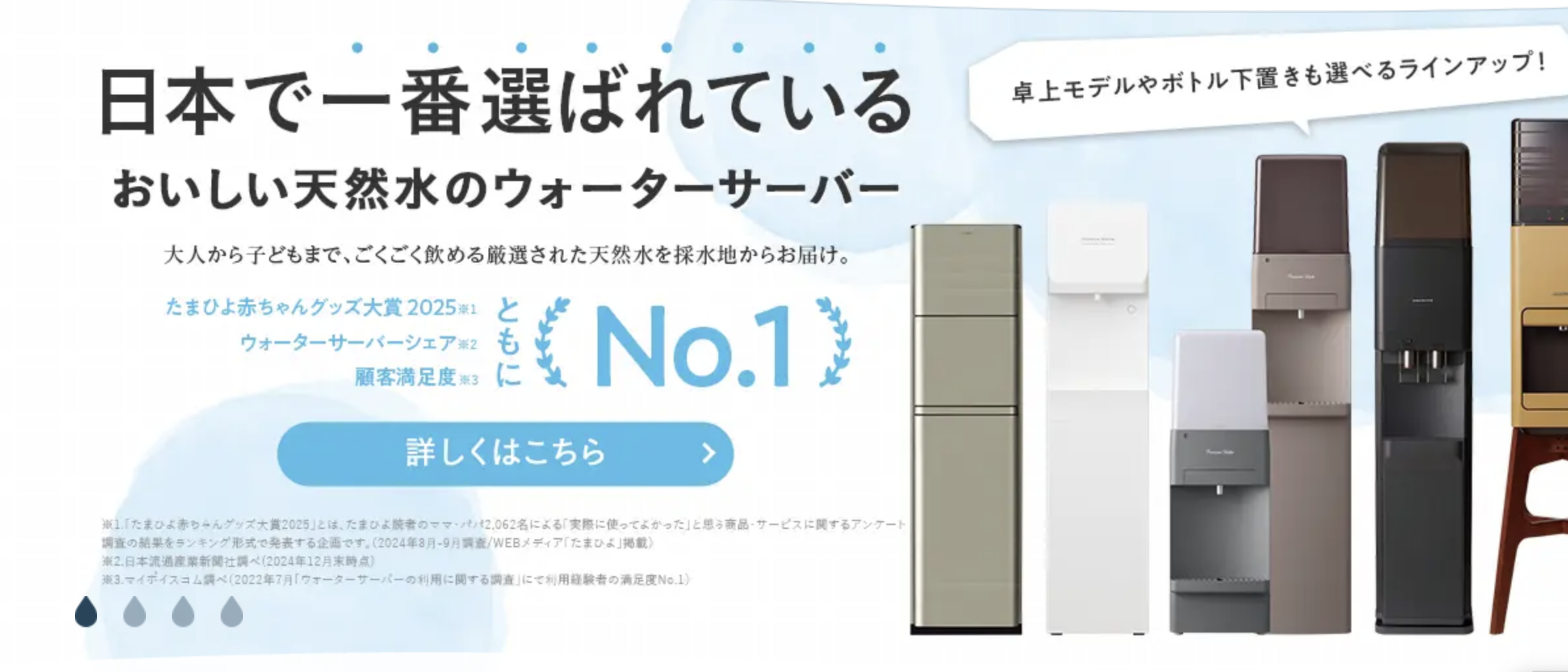 そこで本記事では、安全性・使いやすさ・コスト・メンテナンス性・家庭との相性 の5つを軸に、人気ウォーターサーバー5社を徹底比較しました。口コミ、利用者の満足度、サーバーの機能、子育て家庭との相性まで多角的に検証し、忙しい共働き家庭でも失敗しないランキングを作成しています。