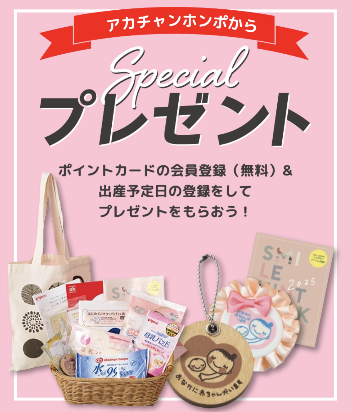 ・応募者全員に生活便利グッズのプレゼント🎁(例:エコバッグ、母子手帳ケースなど)・抽選で1000名以上に当たる豪華景品: