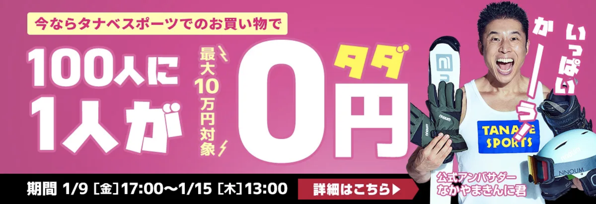 1位 タナベスポーツ 約25,000円 専門店最大級 リフト券/高還元/登録特典 実店舗+専門対応 家族でまとめ買いするほど実質価格が強い