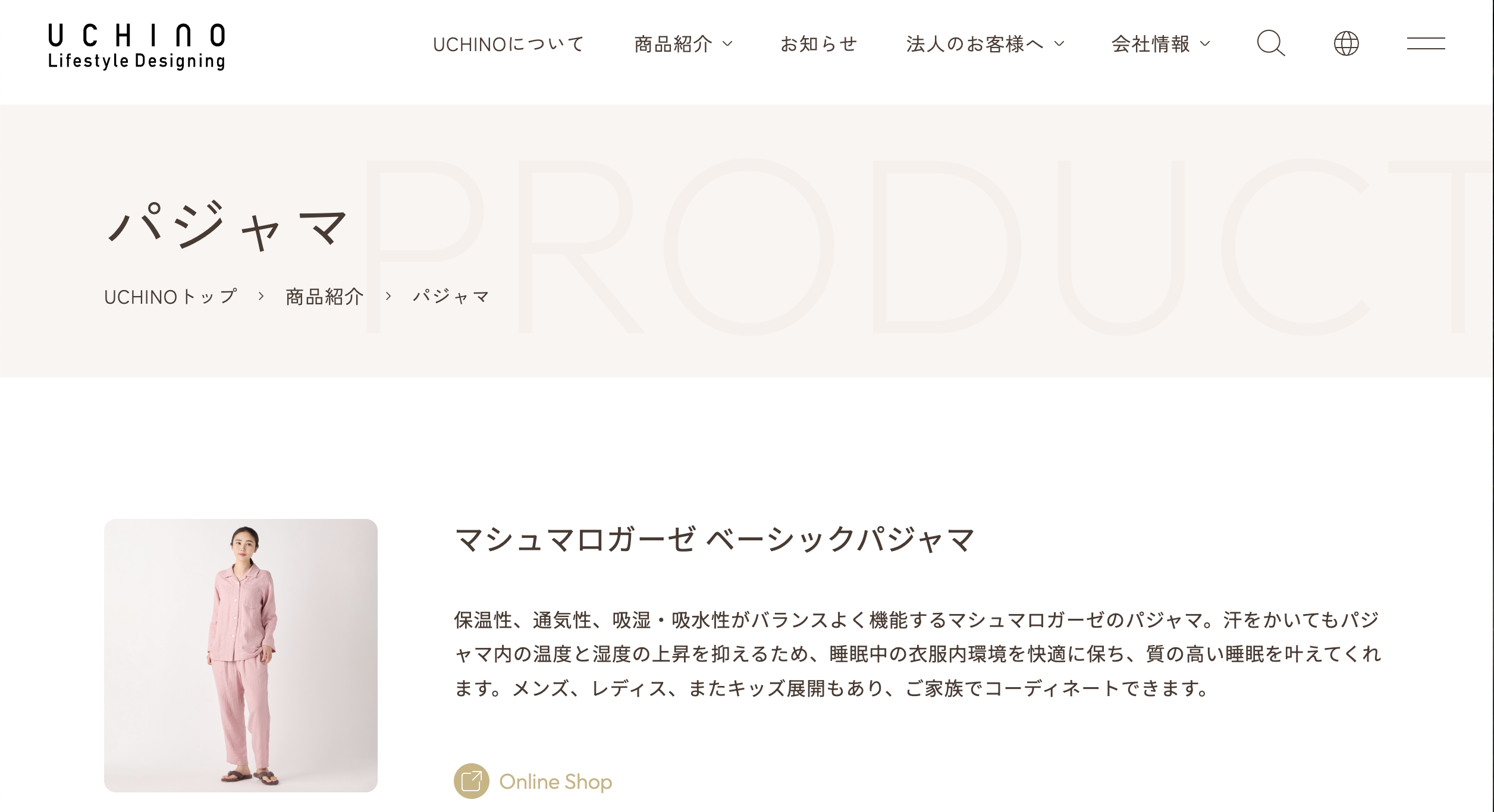 UCHINO(内野)|マシュマロガーゼなど快適素材のパジャマ・リラクシングウェア